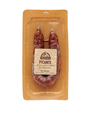 This style of chorizo is halfway between a cooking chorizo and a cured one; this means that it can either be cooked, or eaten on its own, but sliced more thickly than you would a fully cured chorizo. Made using only meat from the shoulder, belly and jaw combined with either hot or mild smoked paprika and subsequently dried for a couple of weeks. 200g
