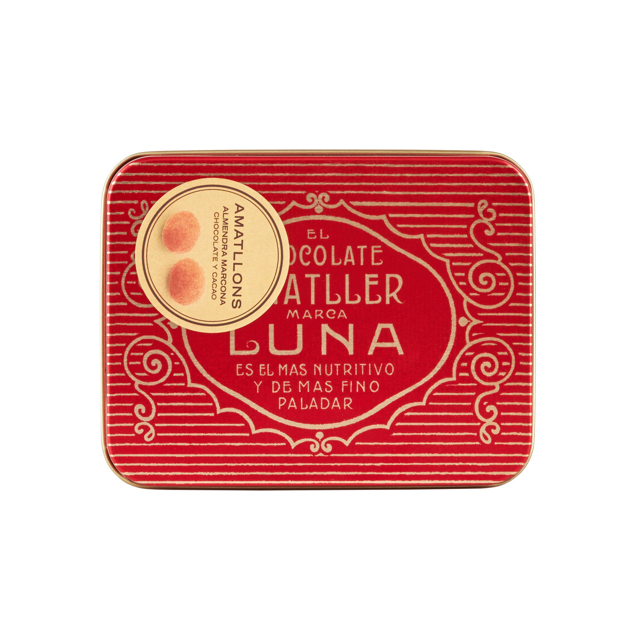 Toasted and caramelised Marcona almonds coated in white chocolate, then dusted in pure cocoa powder. The beautiful vintage tin uses a design from their 1901 range.