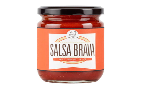 A spicy, tomato based sauce, traditionally spooned over cubes of crisp, roasted potatoes to make the well known patatas bravas.