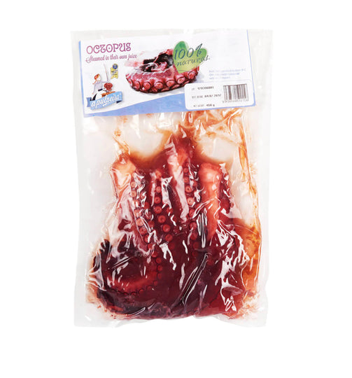 Tender octopus tentacles cooked in their own juices. Ready to slice and serve as "pulpo a la Gallega": rounds of octopus sprinkled with Spanish smoked paprika "pimentón" and sea salt. Brindisa octopus is delicious brushed with olive oil and grilled over a very high heat until nicely charred.