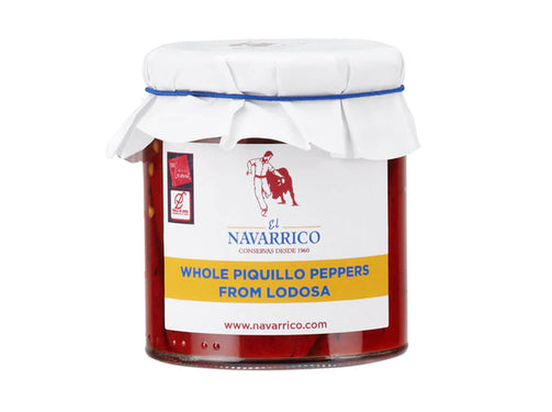Brought back to Spain from the Americas by returning conquistadores, these small red peppers are a very mild variety of chili. Grown in the Lodosa DOP in Navarra these piquillo peppers are roasted whole and then peeled by hand. The peppers are a deep scarlet and their flavour is intense, sweet and mildly piquant. 220g