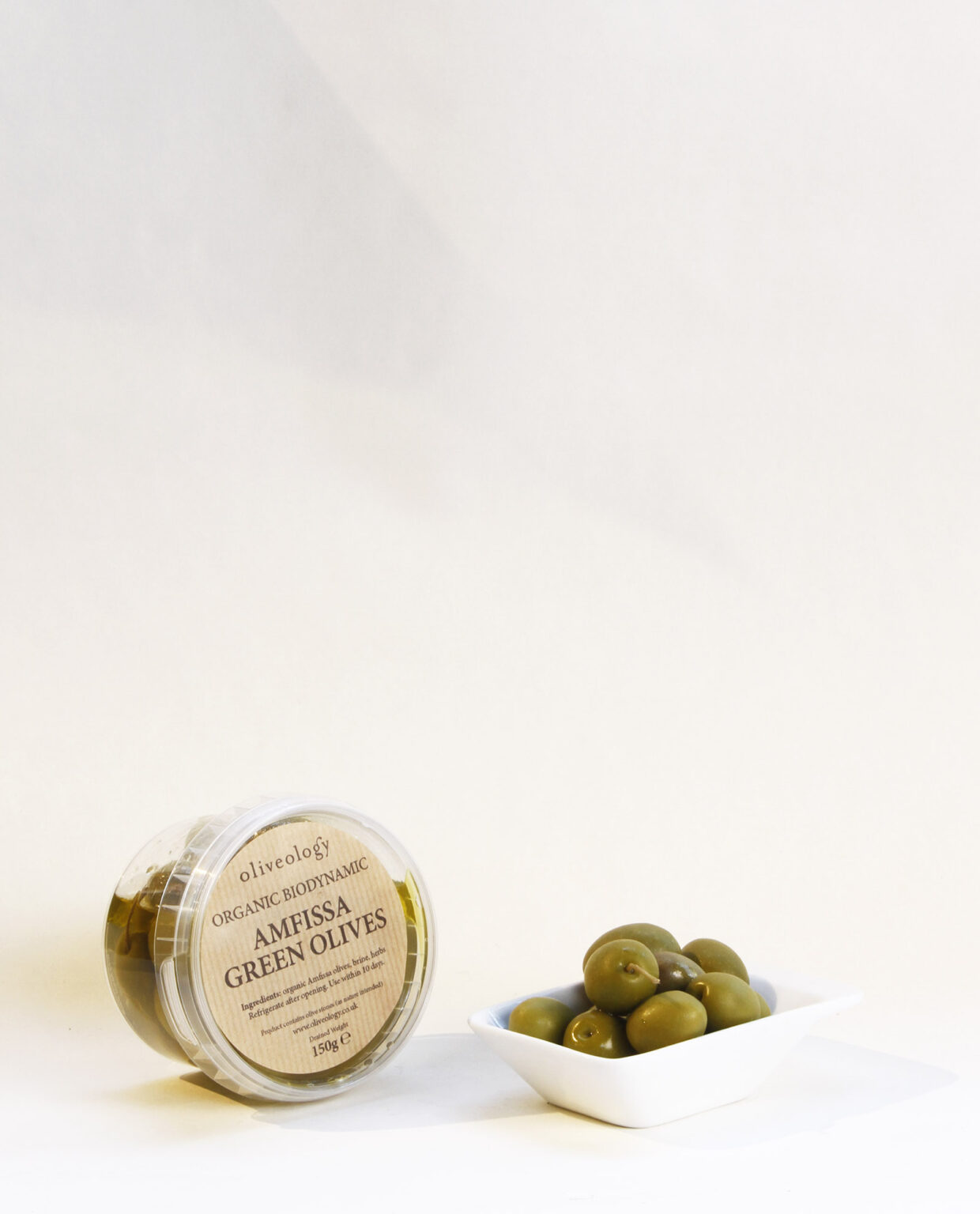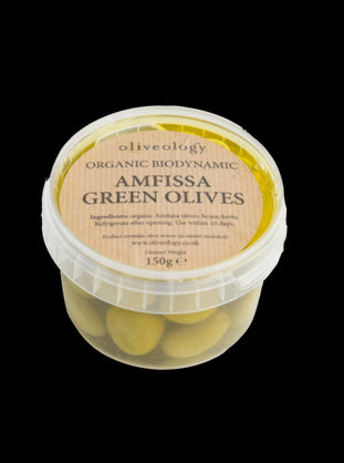 These Amfissa olives are grown on Atrapos Farm, an organic and biodynamic farm in central Greece. They are hand picked when still unripe and singled out with great care. They are fermented in brine, rinsed in fresh water, pickled with herbs, and then packaged. They have a firm green flesh; fresh, bright taste; and are rich in antioxidants.
