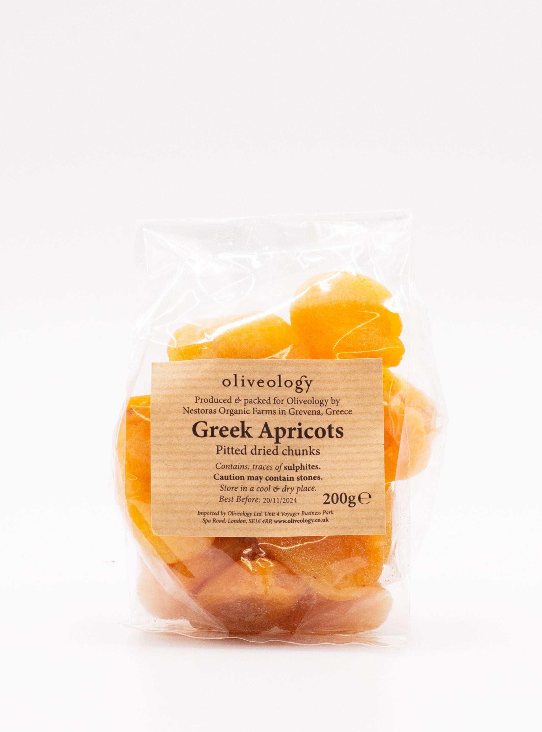 With a naturally deep orange colour, these apricots come from a local variety, picked during the summer and dried without the addition of sugar or other flavourings. They are pitted and separated into chunks for convenience. They have a robust, natural, less sweet flavour and contain no sulfites. Add them to breakfast porridge or granola, use them in baking and salads, or enjoy as an energy-boosting snack. (200g)