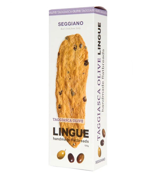 Seggiano thin, crispy olive flatbreads are a delicious and light antipasto snack for serving with cheeses, soups, dips and vegetables. Our artisan Italian Lingue are crackers as nature intended. The dough contains the simplest authentic ingredients, rolled out by hand, then baked to a crispy, golden flatbread. Perfect for antipasto snacking and an essential for any cheese board.