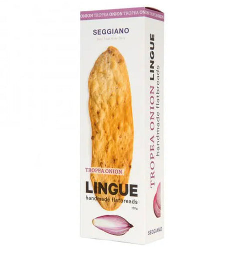 Seggiano thin, crispy Tropea onion flatbreads are a delicious and light antipasto snack for serving with cheeses, soups, dips and vegetables. Our artisan Italian Lingue are crackers as nature intended. The dough contains the simplest authentic ingredients, rolled out by hand, then baked to a crispy, golden flatbread. Perfect for antipasto snacking and an essential for any cheese board.