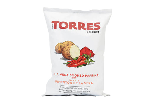 Real hot smoked paprika from De la Vera (DOP) in Extremadura flavours these Spanish potatoes crisps. Rich and warm. Gluten free.